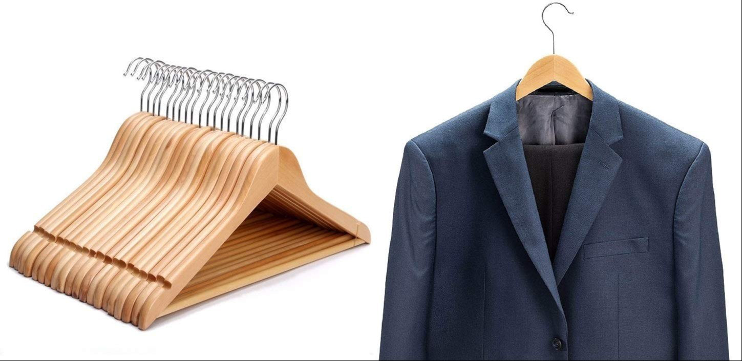 12 Cintres en bois tous types de vêtements, , pantalons, costumes, vestes et chemises, encoches robes, chemisiers et jupes