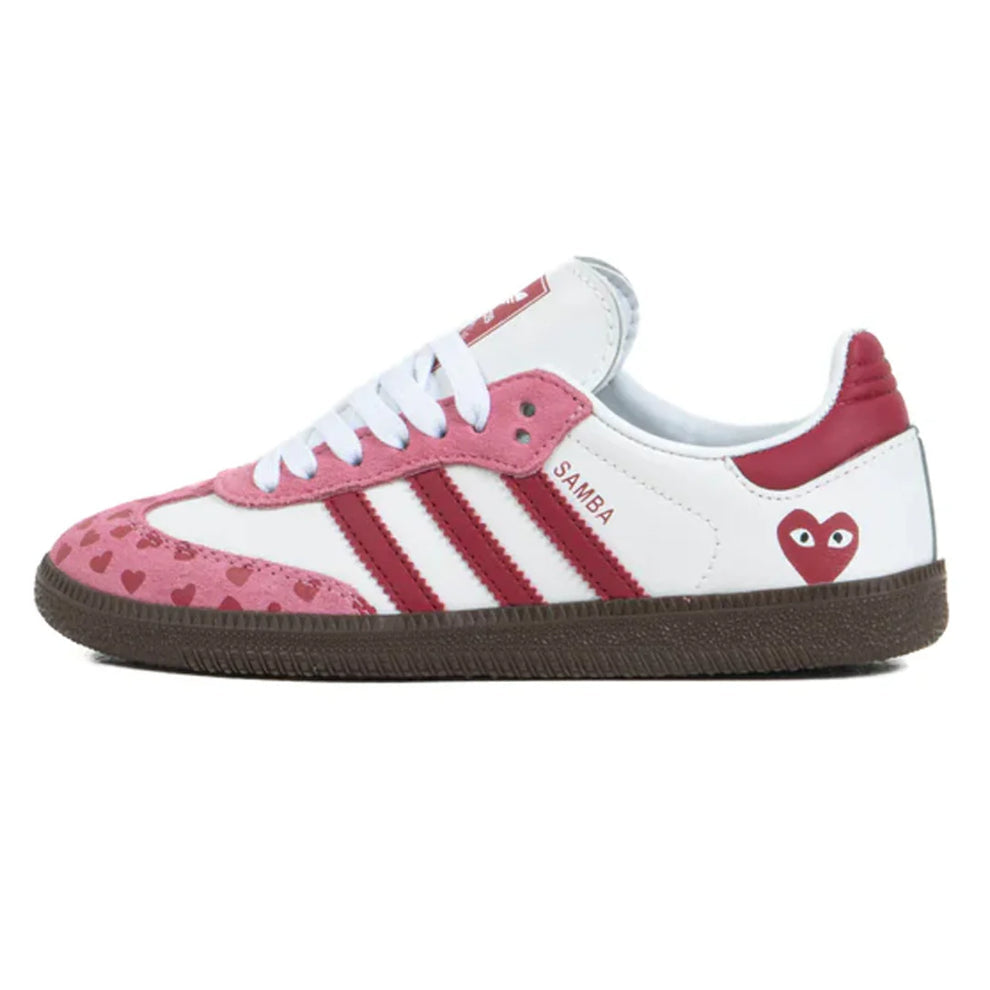 Garçons (CDG) a donné naissance à des versions distinctes de la silhouette emblématique Samba, alliant le design sportif d'Adidas à l'esthétique avant-gardiste de CDG.