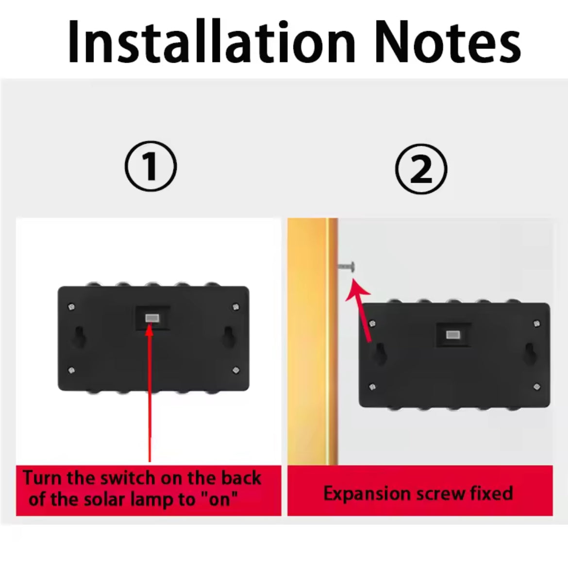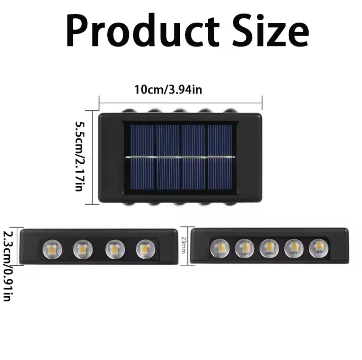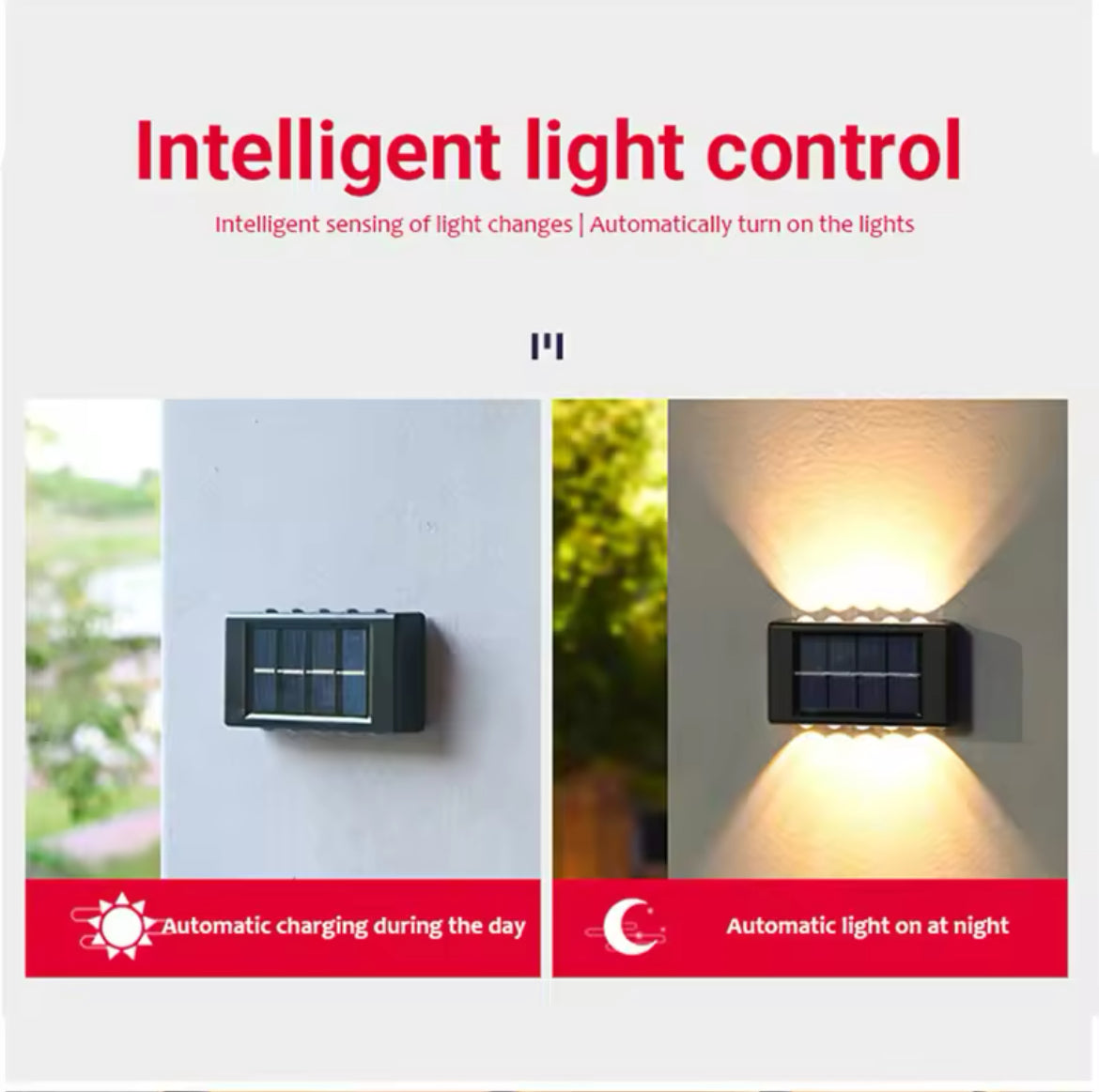 【Éclairage mural décoratif à 12 LED haut et bas】 Les 6 perles lumineuses LED au-dessus et en dessous dans la même direction sont imbriquées, les lentilles de focalisation brillent plus lumineuses et plus loin que les lentilles normales. Superbe décoration pour patio, jardin, porche, allées de cour et allées. 🌞【Applique murale de charge solaire à LED】 L'applique murale solaire est placée dans un endroit ensoleillé, elle absorbe automatiquement l'énergie solaire, l'applique murale solaire est complètement chargée en plein soleil pendant 6 à 8 heures, peut fonctionner pendant 8 à 10 heures la nuit . Économisez de l'argent, plus de protection de l'environnement et de l'environnement, très joli et une belle touche au porche. 💧 【Appliques solaires étanches IP65】 Les appliques murales solaires de jardin ont une coque ABS de haute qualité avec une étanchéité IP65 et sont robustes pour une utilisation en extérieur. Lampes solaires IP65 étanches, les lampes solaires extérieures sont résistantes à la chaleur et étanches, ce qui peut isoler efficacement l'eau et résister à la pluie et à la neige. Fonctionne même par mauvais temps. 🔧【Applique murale solaire facile à installer】 Aucun câble ou adaptateur gênant requis, facile à installer et à configurer comme éclairage extérieur ou applique murale de sécurité au-dessus de la porte d'entrée pour une utilisation en extérieur. Les appliques murales solaires de jardin peuvent être montées sur un porche, un jardin, un couloir, une terrasse, une porte de garage, une villa, un champ, une grange, une clôture, etc. 🎁【Largement applicable】Le bel effet d'éclairage des lampes solaires supérieures et inférieures ajoute une touche de luxe et de décoration à votre maison, en particulier pendant les festivals. Applique murale d'extérieur à lumière solaire adaptée aux jardins, clôtures, chemins, cours, murs, patios, escaliers, terrasses, allées ou tout espace intérieur/extérieur nécessitant un éclairage.