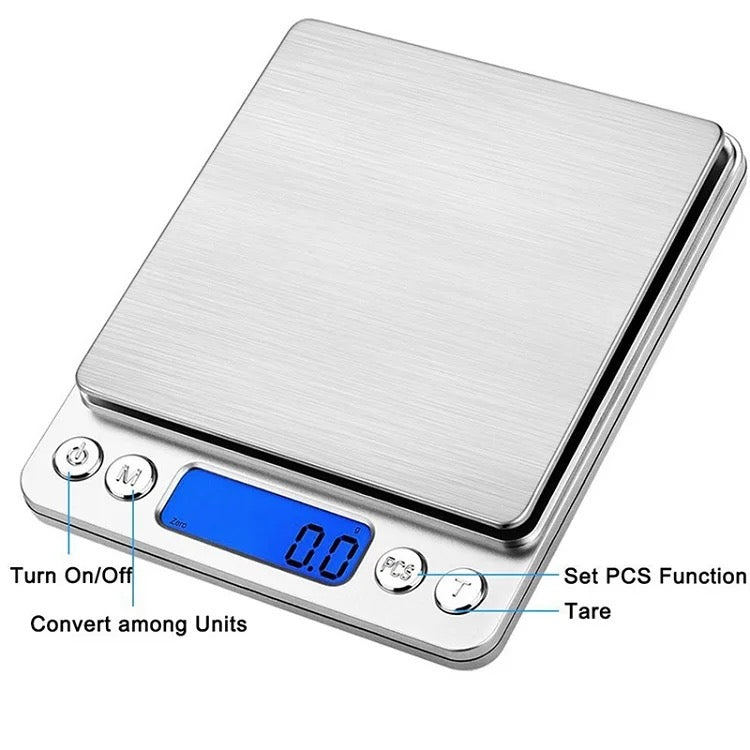 Diverses fonctions : balance numérique équipée d'un rétroéclairage clair de l'écran LCD et de deux plateaux que vous utilisez comme protecteurs ou plateaux de balance. La balance de précision convient pour peser des bijoux, des aliments, des comprimés, de la poudre, des pierres précieuses, des pièces de monnaie, de l'or, etc. Balance de cuisine numérique. 2 piles AAA sont incluses
