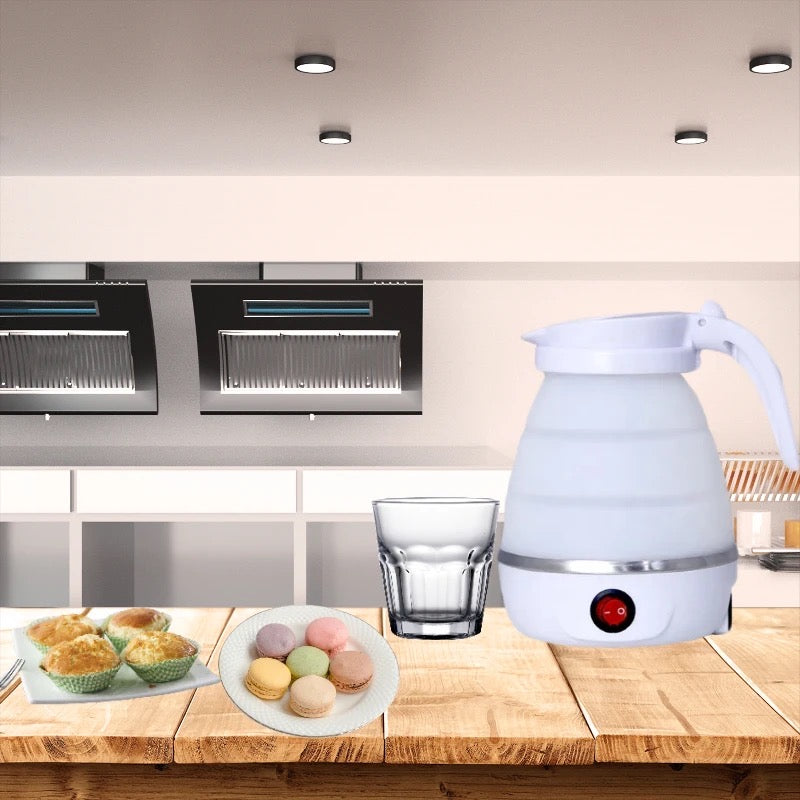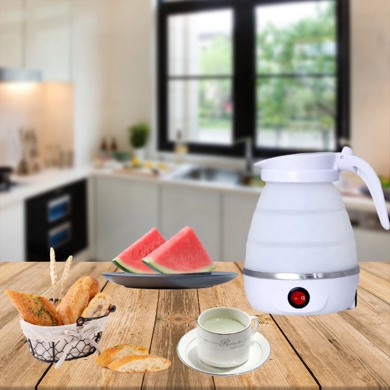 Matériau 100% silicone écologique + PP + acier inoxydable Capacité: 0.6L Taille du produit: 20*13*16cm 13.5*22*11CM) puissance 800W Tension: AC100-120V Caractéristiques: * DESIGN PLIABLE: intelligemment conçu pour un usage domestique, les voyages, le camping, etc. Facile à transporter et à emballer pour les voyages et le camping, il est plus pratique à ranger. * PROFIL BAS, LÉGER: Notre bouilloire électrique pliable s'effondre à une taille plus petite, elle ne prend pas beaucoup de place dans votre sac et légère, donc pas de souci de se faire frapper avec des frais de bagages en surpoids. * BOUILLOIRE D'EAU PORTABLE: La prise peut être séparée et la poignée peut être pliée, parfaite pour emporter partout où vous allez. Profitez toujours d'une tasse fraîche avec la bouilloire de voyage en silicone. * SÉCURITÉ ET MATÉRIAU DE HAUTE QUALITÉ-Silicone de qualité alimentaire et acier inoxydable 304, résiste aux températures élevées et maintient la stabilité de la structure même lorsqu'il est très chaud. * ÉBULIR RAPIDEMENT AVEC PROTECTION SÈCHE: Cette bouilloire fait généralement bouillir une casserole pleine d'eau en environ 5 minutes (selon l'altitude). Une fois que l'eau atteint le point d'ébullition, la bouilloire s'éteint automatiquement. Il dispose également d'une fonction de protection contre l'ébullition à sec qui éteint l'élément chauffant lorsque la bouilloire est vide.