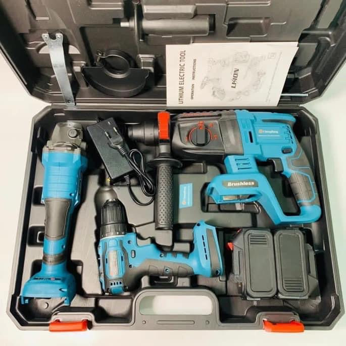Ensemble d'outils électriques sans fil sans balais, perceuse électrique, meuleuse d'angle, clé à chocs, marteau électrique à percussion, batterie, 4 pièces.