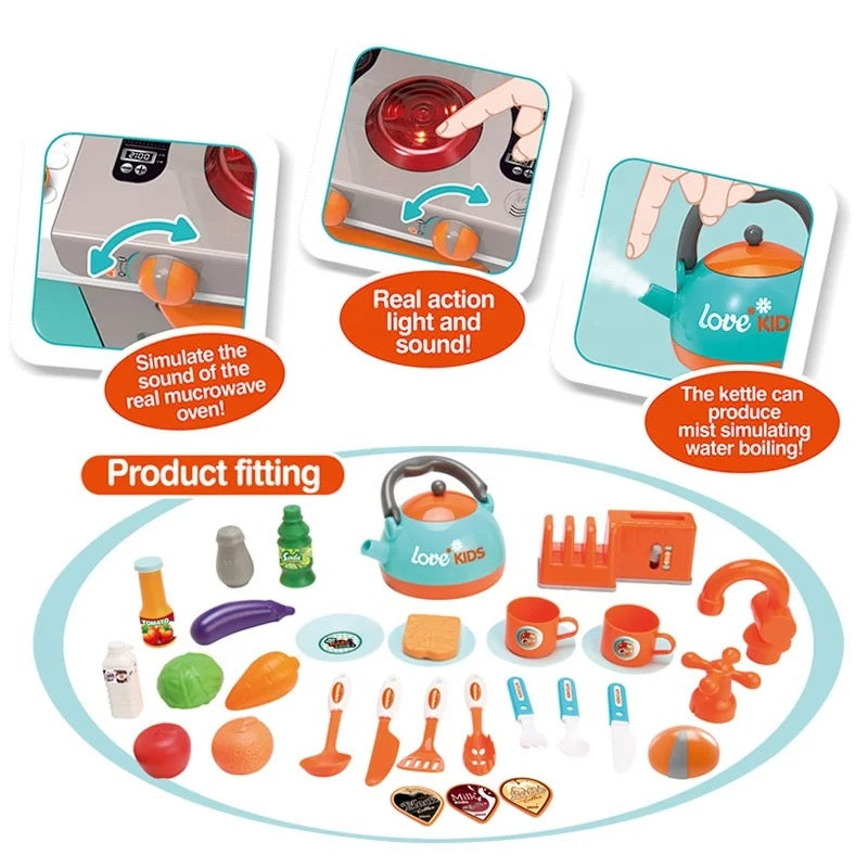 Effet de fumée interactif : Pour rendre le jeu encore plus amusant et réaliste, cet ensemble est équipé d'une fonction de fumée qui se déclenche lorsque les enfants « cuisinent » leurs repas fictifs. Cela ajoute une dimension sensorielle excitante et engageante à chaque session de jeu.