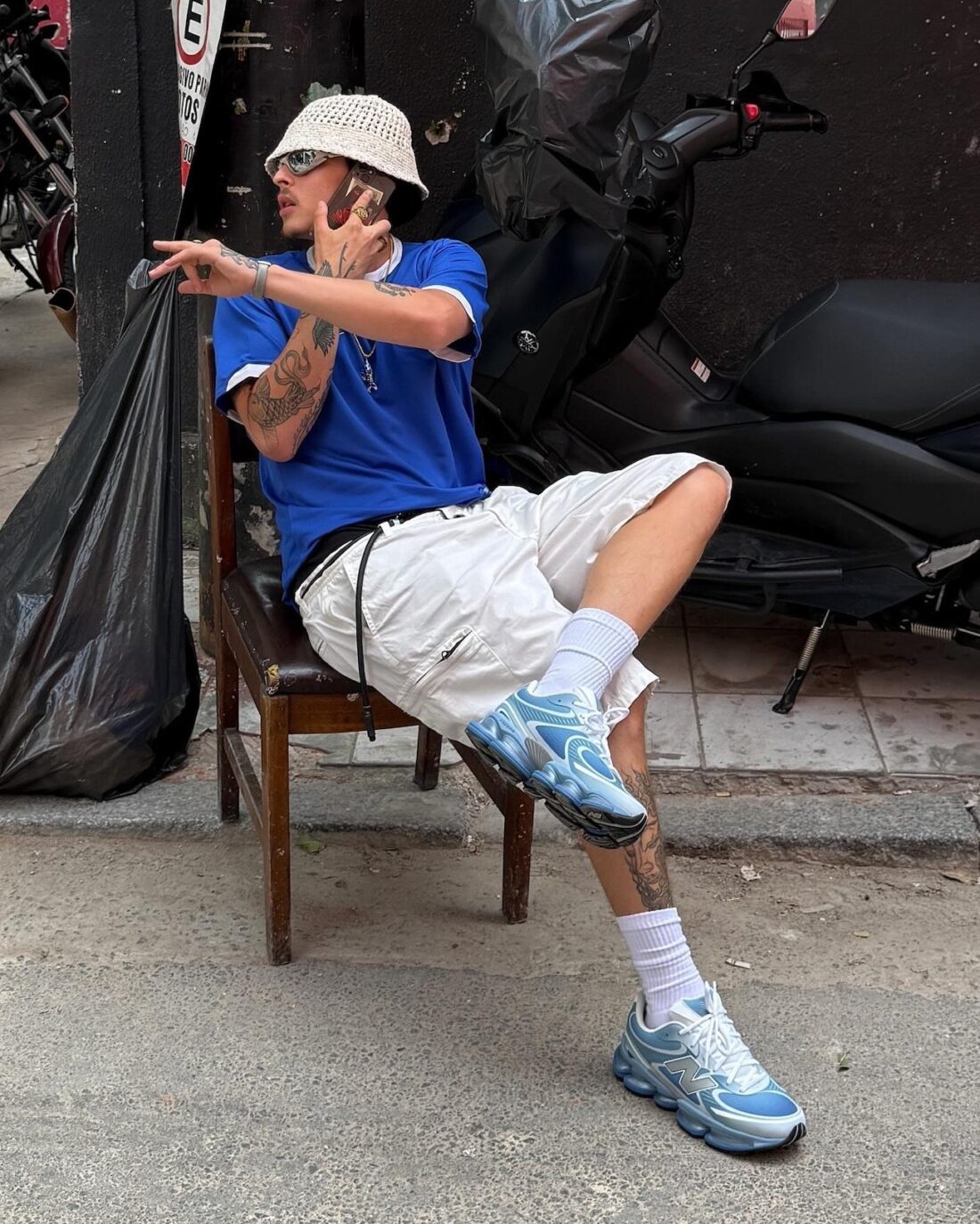 Dévoilé au travers d’un coloris bleu, le design se rapproche plutôt de la NB 9060 grâce à sa semelle surdimensionnée dotée d’un amorti ABZORB. Donnant naissance à un autre langage de conception, on retrouve des superpositions ondulées disposées au-dessus de la base en mesh ainsi qu’un logo « N » argenté. Un mélange aux influences rétro qui renforce l’engagement de la marque envers des matériaux et un artisanat haut de gamme. D’ailleurs, les différentes unités introduites sur la semelle adoptent une configuration qui rappelle fortement celle de la technologie Shox de Nike.