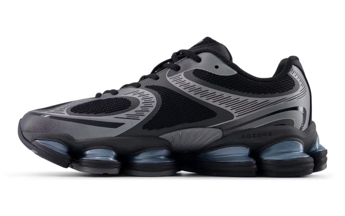 Cette nouvelle venue s’inscrit pleinement dans l’héritage futuriste instauré par l’équipementier américain ces dernières saisons. Cette fois-ci, le modèle s’offre une tige en mesh noir particulièrement travaillée, accompagnée d’empiècements thermocollés gris. Un combo efficace, qui rappelle immédiatement les running rétro de New Balance. Parallèlement à son empeigne moderne et technique, on retrouve une imposante semelle ABZORB SBS à l’aspect volontairement massif, également dotée d’une subtile touche de bleu.