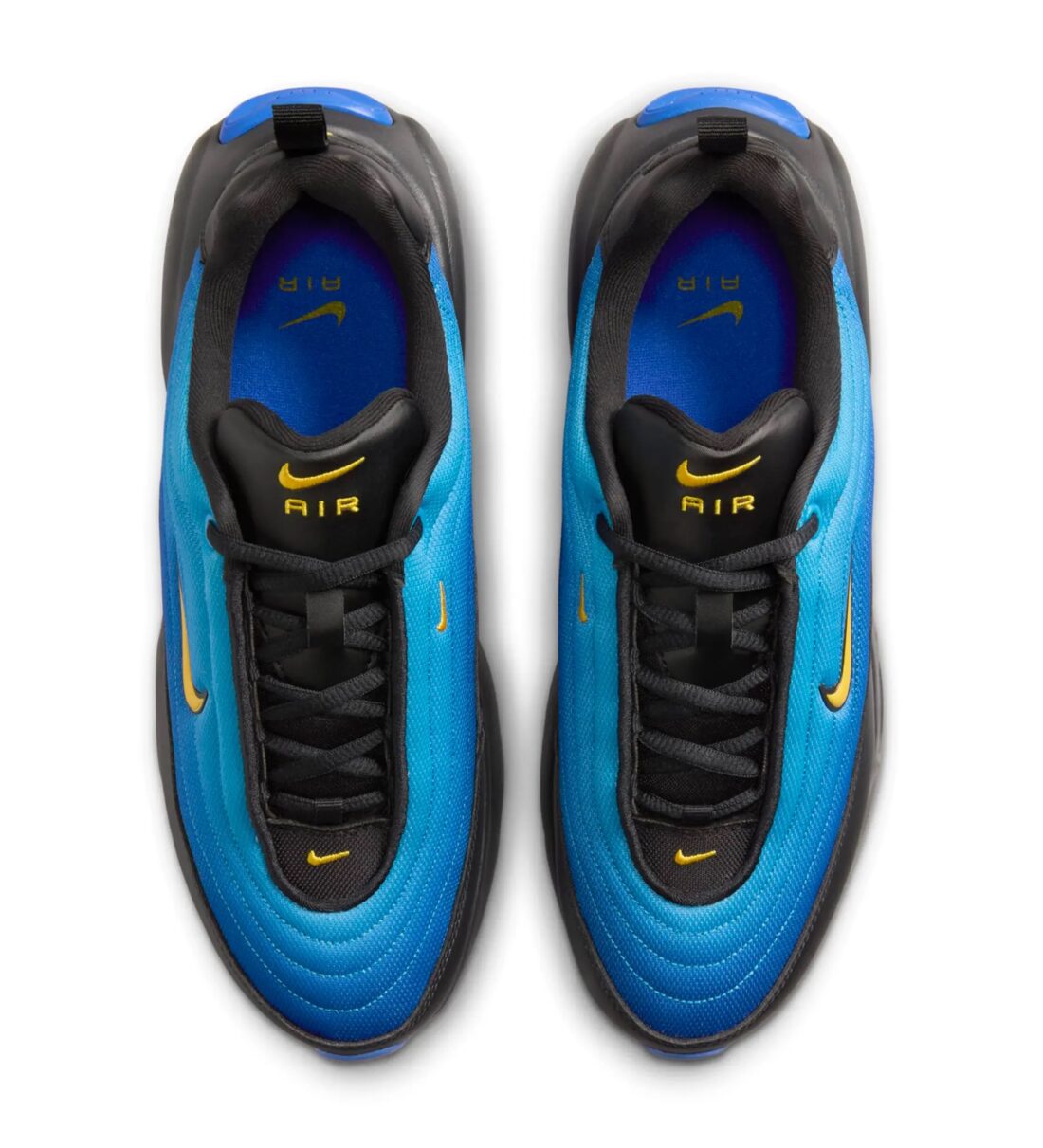 Prévue au cours de l’automne, la Air Max Portal est décrite comme une sneaker lifestyle, exclusivement disponible pour les femmes. Fabriquée à partir de mesh et de cuir synthétique, la paire laisse différentes ondulations traverser sa tige bleue ponctuée par un mini-swoosh jaune. Fidèle aux racines de la Air Max, la semelle se réinvente en prenant de la hauteur qu’elle doit notamment à son moulage unique tout en inscrivant des unités d’air visibles sous le talon
