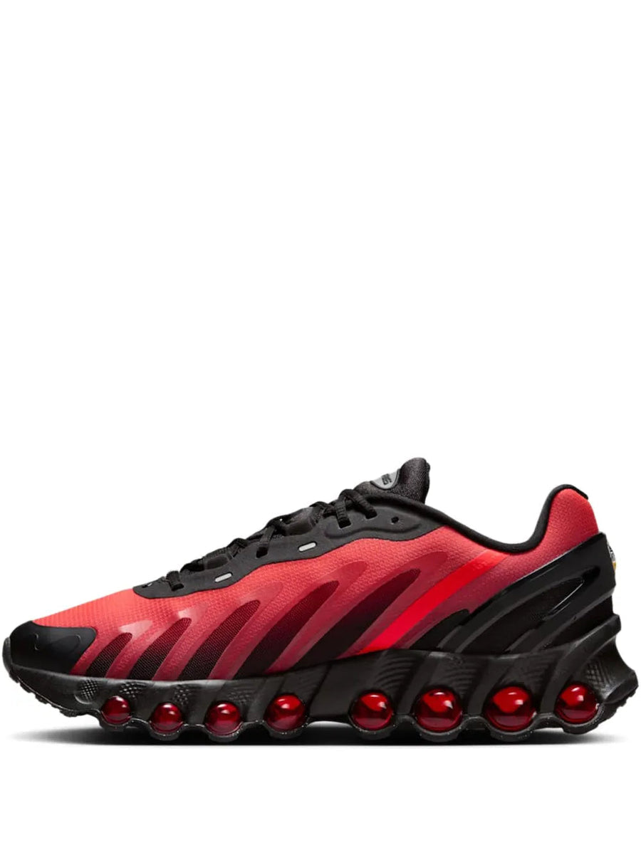 La Nike Air Max DN8 « Black Bright Crimson » inaugure une nouvelle itération de la technologie Dynamic Air de Nike, avec une semelle intermédiaire en Phylon avec deux unités Air comprenant huit tubes Air à double pression. À chaque pas, l'air circule entre les tubes de chaque chambre, offrant une sensation de rebond et une conduite confortable. Sur le dessus, la tige en textile cramoisi est accentuée par des découpes latérales qui révèlent une sous-couche en mesh dégradé. Un patch Air Max réfléchissant orne la languette, tandis qu'un badge Air Max DN rétro décore le contrefort en TPU noir