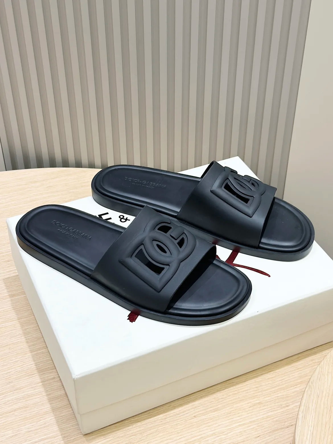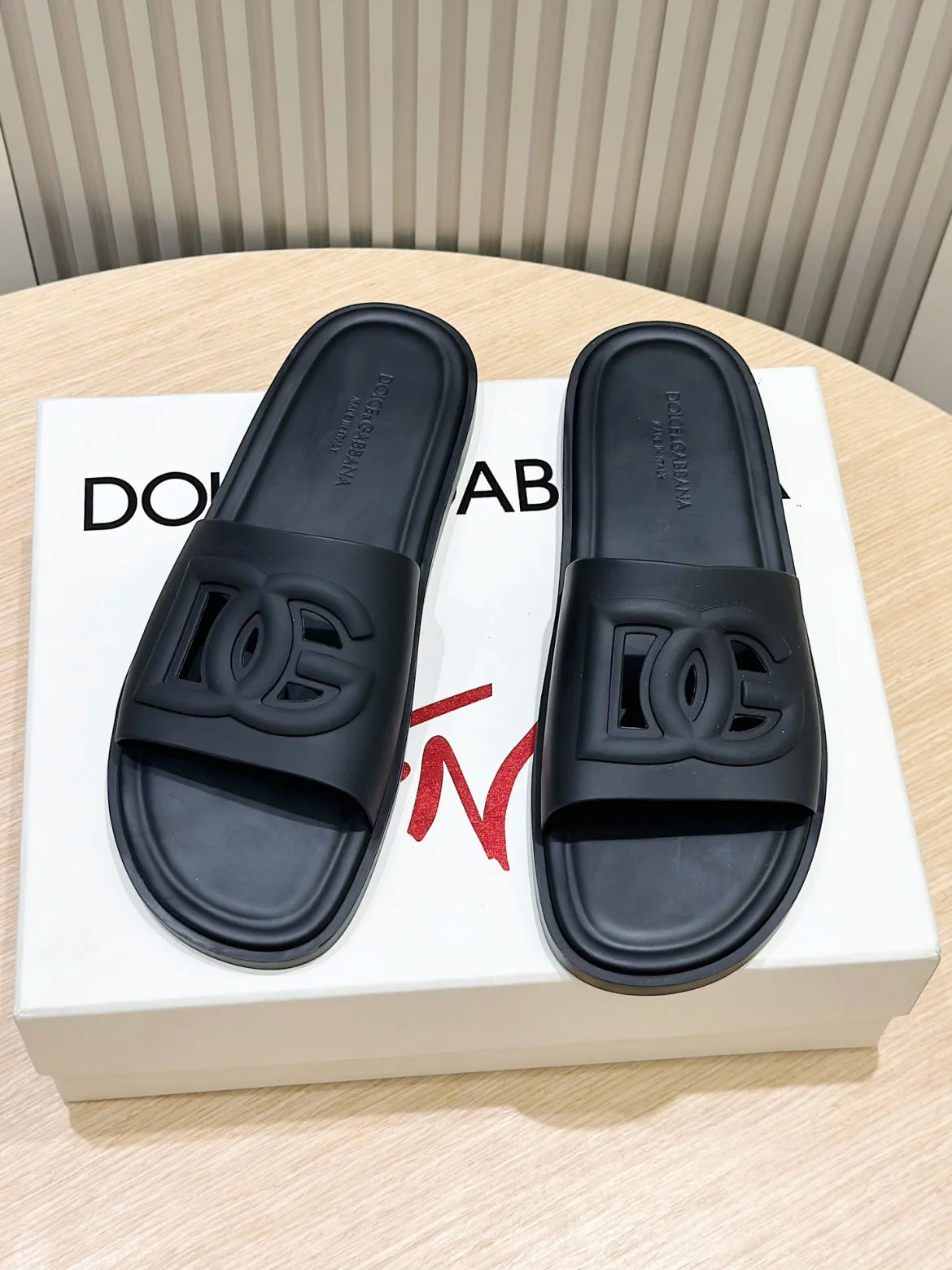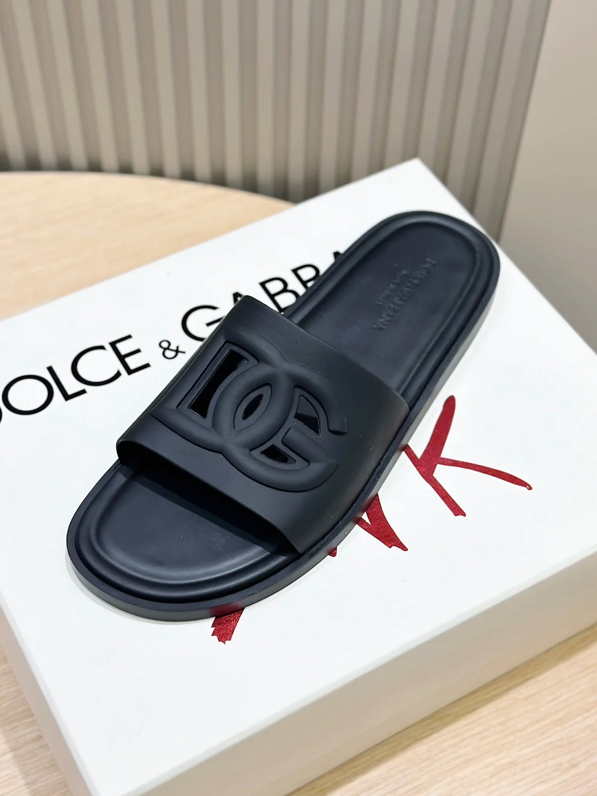 Chaussons de plage en caoutchouc pour hommes D&G24 avec logo DG Le logo DG est orné sur la tige, et le design creux et perforé est à la fois élégant et classique. La semelle intérieure avec étiquette en caoutchouc avec logo est un détail parfait. Taille : 39-44 (38,45 personnalisé)