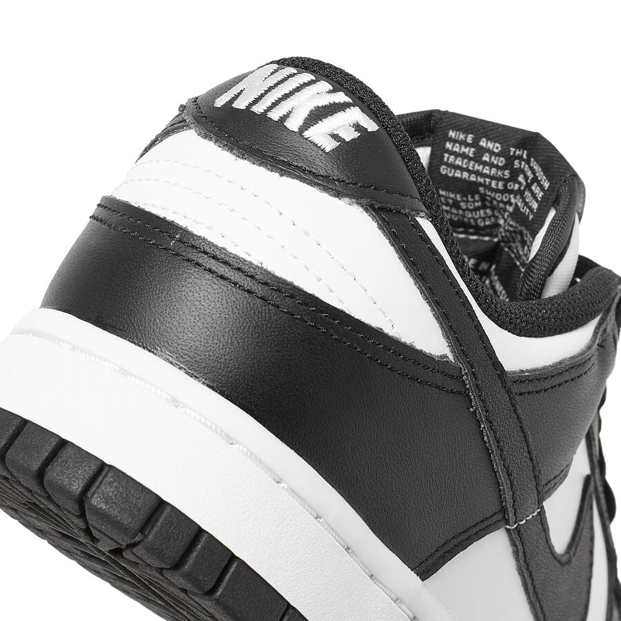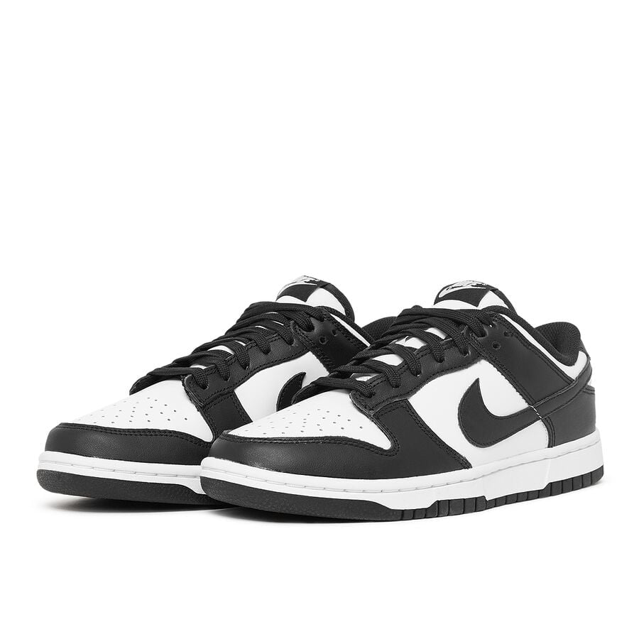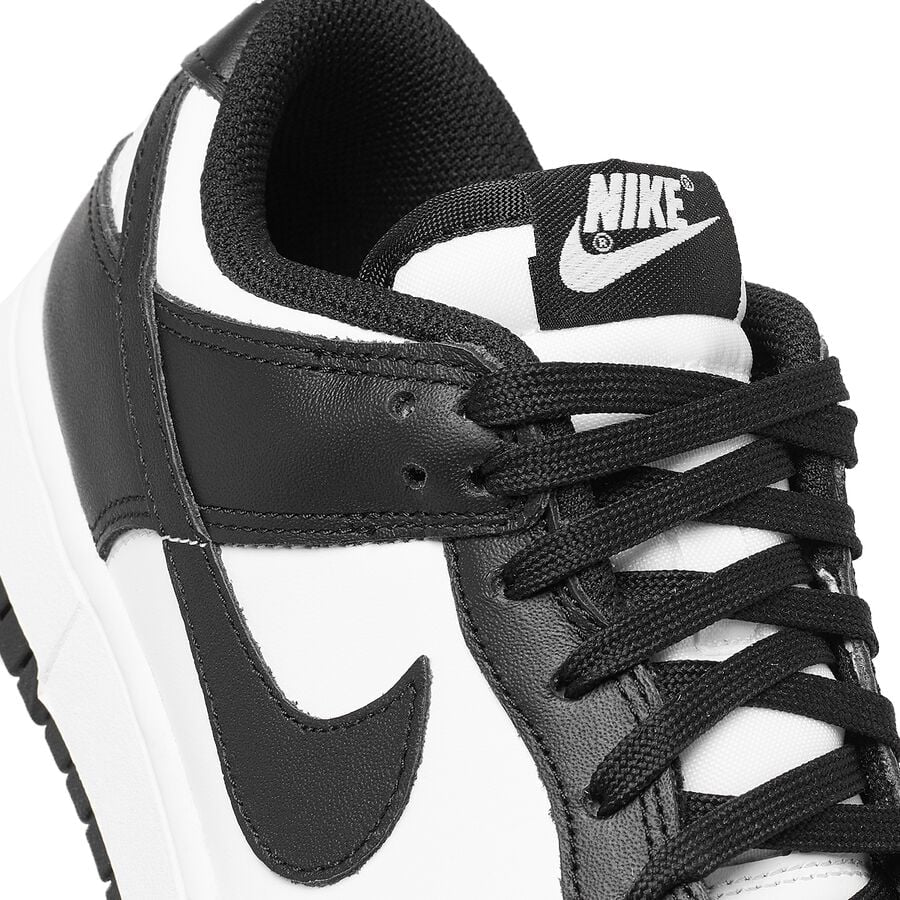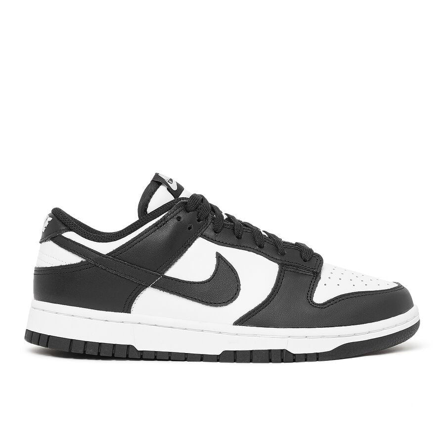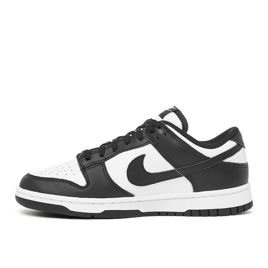 Cette NIKE Dunk Low est livrée avec une tige classique en cuir noir et blanc dans un style color block, avec une pointe perforée, des Swooshes latéraux, un rembourrage sur la languette et sur le col de la chaussure, des logos NIKE sur l'étiquette de la languette et sur le talon également. ainsi qu'une semelle cupsole amortissante et durable.